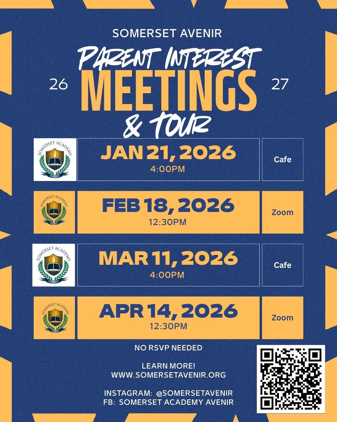 Prospective Parent Zoom When: Tue, April 14, 12:30 pm - 01:30 pm Location: Zoom Join us on Zoom to learn more about Somerset Avenir for the 26-27 school year. Back to Events List Calendar View